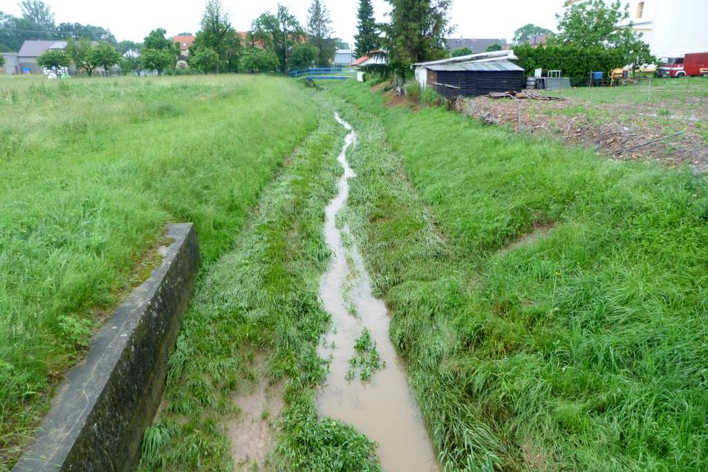 Čištění a oprava potoka před obcí